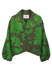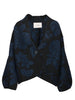 Floor - Cardigan in misto alpaca e lana nero con jacquard floreale blu, scollo a V, maniche lunghe a sbuffo, chiusura centrale con bottone, tasche laterali a filetto, vestibilità regolare.