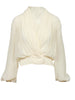 Philosophy di Lorenzo Serafini - Blusa cache coeur in georgette misto seta avorio con drappeggi, profondo scollo a V, maniche lunghe a sbuffo con elastico sul fondo, in vita chiusura cache coeur con automatici a scomparsa, vestibilità regolare.
