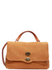 Borsa a Mano Postina Jones Medium in Pelle Scamosciata Tortora