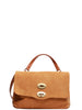 Zanellato - Borsa a mano Postina Jones Small in pelle tortora effetto scamosciato con lati impreziositi da borchie oro, manico singolo, tracolla in pelle tono su tono, sul davanti patta e chiusura con gancio, interno foderato, da poter indossare come borsa a tracolla.