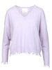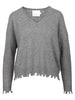 Maglia Mia in Cashmere Grigia con Scollo a V e Rotture