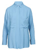 Semicouture - Camicia Tiffany in misto seta celeste a righe bianche, colletto classico, maniche lunghe con polsino, chiusura centrale con bottoni, sul davanti tasche quadrate... Read more