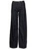 Sportmax - Jeans Dora palazzo modello cinque tasche in denim di cotone blu, lavaggio chiaro, gamba ampia, vita media con passanti per cintura, chiusura centrale con zip e bottone, sul retro etichetta nera con logo, impunture arancioni, da poter abbinare con il gilet Dominio di Sportmax, vestibilità regolare.