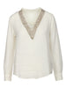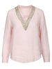 120% Lino - Blusa in lino rosa, con scollo a V, sul davanti rifiniture in strass al bordo dello scollo, maniche lunghe, polsini con bottoncino... Leggi di più