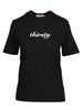 T-Shirt Girocollo in Cotone Nera con Scritta "Thirsty" Bianca